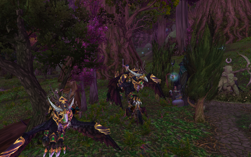 Алътека, воительница ночных эльфов спокойно разгуливала по Тенистой долине, когда она наткнулась на беорна? Впрочем неважно что он заявлял обратное и называл себя пандареном. Эльфийка провела не длительную беседу с пандареном, узнав его имя. Звали этого необычайно похожего на беорна незнакомца Чиэй, это еще кратко! Воительница объяснила пандарену о ситуации и что вообще происходит в Тенистой долине и попал он сюда совершенно не вовремя. Алайссия Клинок Правосудия, капитан отряда часовых "Ночной Взор" дала задание стражнице, она приказала ей провести разведку с воздуха, осмотреть земли греллей на что-то подозрительное и странное. Ночная эльфийка не могла отказаться от задания, хоть сил после Затонувшего Храма вовсе не осталось, она согласилась. Пандарен и Алътека уже собирались седлать резвых и быстрых гиппогрифов, как им повстречался суровый воин эльфийского народа, Фрид Стальной Коготь его звали, как после узнала ночная эльфийка. Стражница предложила воителю отправиться с ними, на что тот согласился. Теперь втроем, они отправились к своим гиппогрифам. Седлая их, Фрид выдал смешок, проявляя сомнение в том, что гиппогриф поднимет такого жирного беорн.. кхм! Пандарена я хотел сказать, точно. В общем-то, Фрид ошибался и гиппогриф хоть и с трудом, но поднял в воздух Чиэя. Взмывая в воздух, гиппогрифу явно не понравился Фрид и он решил это показать и выразить в полете, делая различные рискованные трюки и резкие повороты, снижаясь и поднимаясь в воздухе, но воитель крепко держался за узда и смог не вылететь из седла, заслуживая уважение от гиппогрифа и теперь то точно, такого не повториться. Облетев земли греллей, троица приземлилась за одним из лагерей, на пустой полянке, где никого не было. Эльф, эльфийка и пандарен слышали лишь шепот и мерзкое хихиканье греллей, не более. Пробравшись дальше, Фрид и Пандарен незаметно перебрались за одну из хижин греллей, а вот Алътека наступила на ветку, которая в последствие издала громкий хруст. Грелли обратили на это внимание и решив проверить, к счастью не обнаружили никого, вернувшись к костру. Алътека и остальные выдохнули и Фрид предложил взять одного из греллей в заложники, попытаться что-то вытащить из него через пытки, либо же хитрости, на что Алътека и Чиэй согласились. Задача Алътеки была такова, ей нужно было отвлечь большую часть греллей на себя, запрыгнув на гиппогрифа и пролетев рядом с ними. Воительница хорошо управляла гиппогрифом и отвлечь греллей ей труда не составило. После того как она улетела, а грелли погнались за ней, Фрид кивнул пандарену и тот начал издавать звуки, что схожи с медвежьим рыком. Оставшийся грелль, отдающий команды остальным обратил на это внимание и решил заглянуть за хижину, проверить что там и благополучно получить рукояткой меча по голове от Фрида, тем самым отключившись. После того как грелль упал на землю без сознания, воитель взял его на руки и подозвал к себе Алътеку, загружая его на гиппогрифа воительницы, привязывая на всякий случай, дабы тот не выпал из седла. После того как он это сделал, пандарен и он же ринулись к своим летающим созданиям, седлая их и улетая прочь за Алътекой. Задание было выполнено и был пойман пленник! Данную информацию троица доложила капитану, а грелля заключили к клеть, дабы он ожидал допроса.